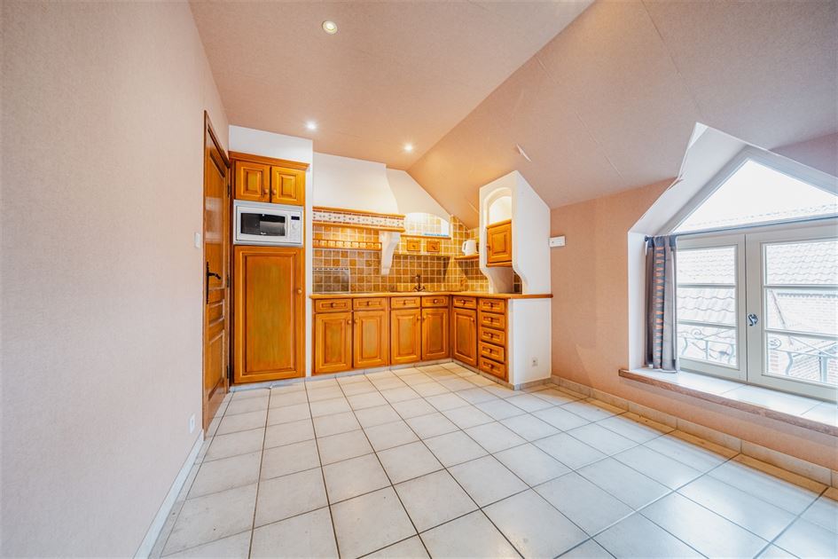 Op de verdieping bevindt zich een comfortabel appartement met twee slaapkamers, ideaal voor eigen bewoning of als opbrengsteigendom. Achteraan beschikt het gebouw over een zeer ruime parking, wat een grote troef is voor klanten en bezoekers.