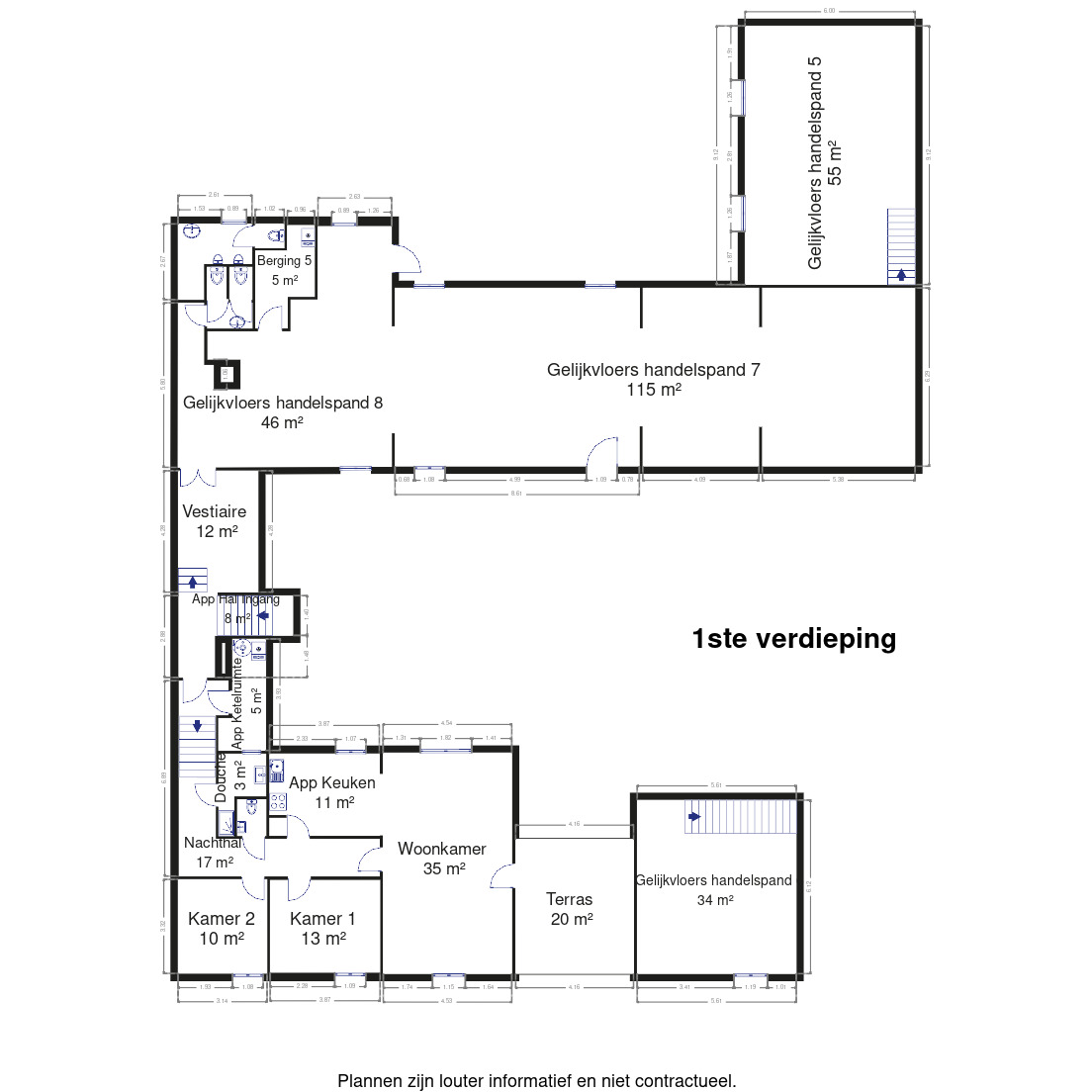 De drie handelspanden zijn momenteel ingericht als restaurant/ijssalon, taverne en pizzeria, maar dankzij de gunstige indeling en ligging lenen ze zich perfect voor tal van andere commerciële activiteiten: horeca, kantoorruimte, winkel, praktijkruimte,…. De feestzaal biedt bovendien extra potentieel voor evenementen, seminaries of groepsactiviteiten. Achteraan is voor elk handelspand een aparte, ruime berging voorzien.